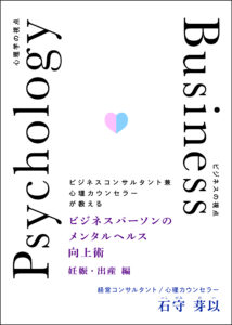 当社代表・石守芽以の著書「ビジネスコンサルタント兼心理カウンセラーが教える ビジネスパーソンのメンタルヘルス向上術 妊娠・出産編」が2023年10月6日に出版されました。